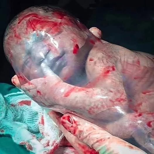 While the mum has remained anonymous, the images were shared by obstetrician Tran Viet Phuong, who said she thought it was “interesting” he was clasping the intra-uterine device (IUD) as he came into the world.